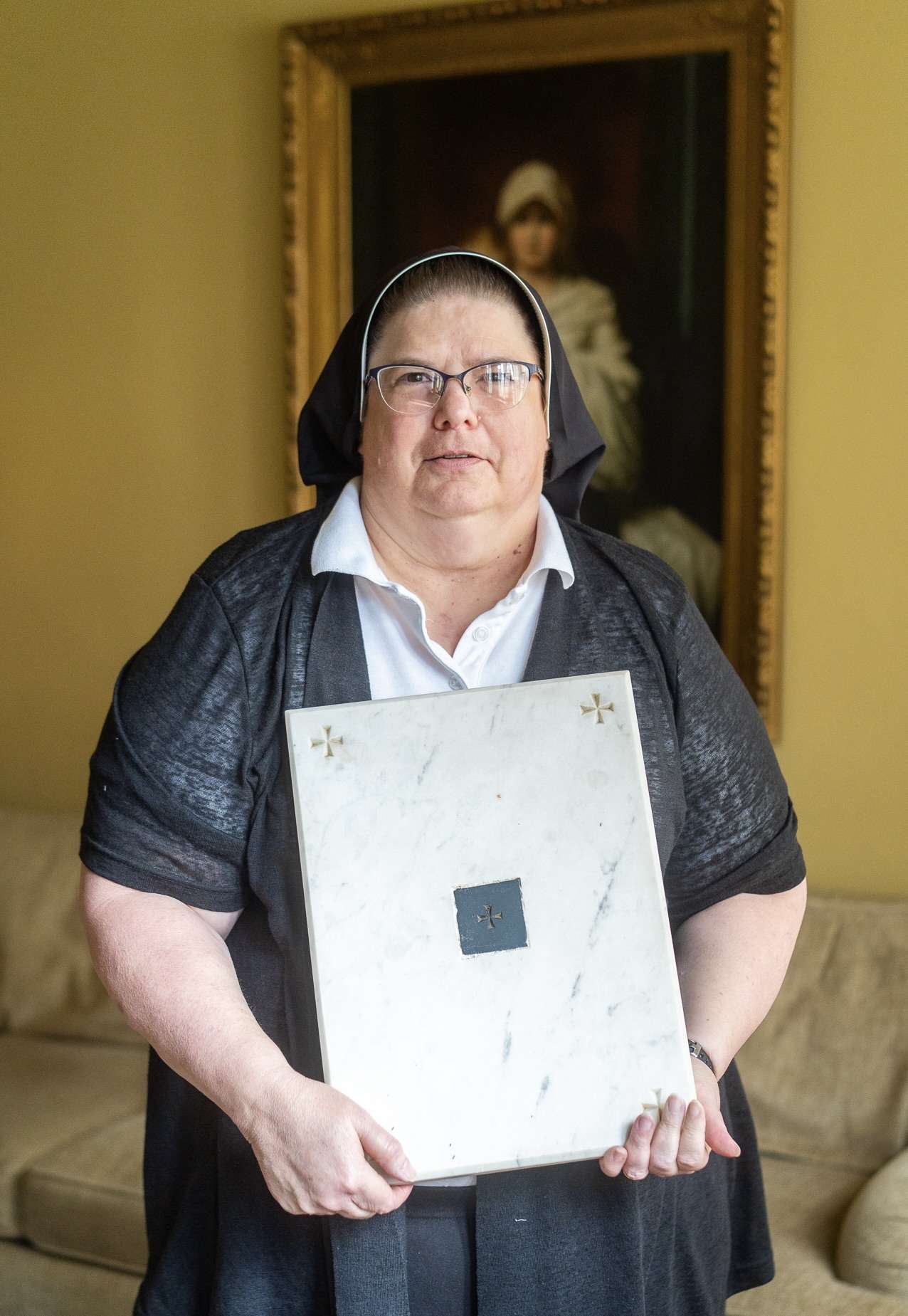 Believed to have gone unseen for generations, a long-forgotten white marble altar stone was rediscovered by the sisters hidden away in the monastery sacristy.